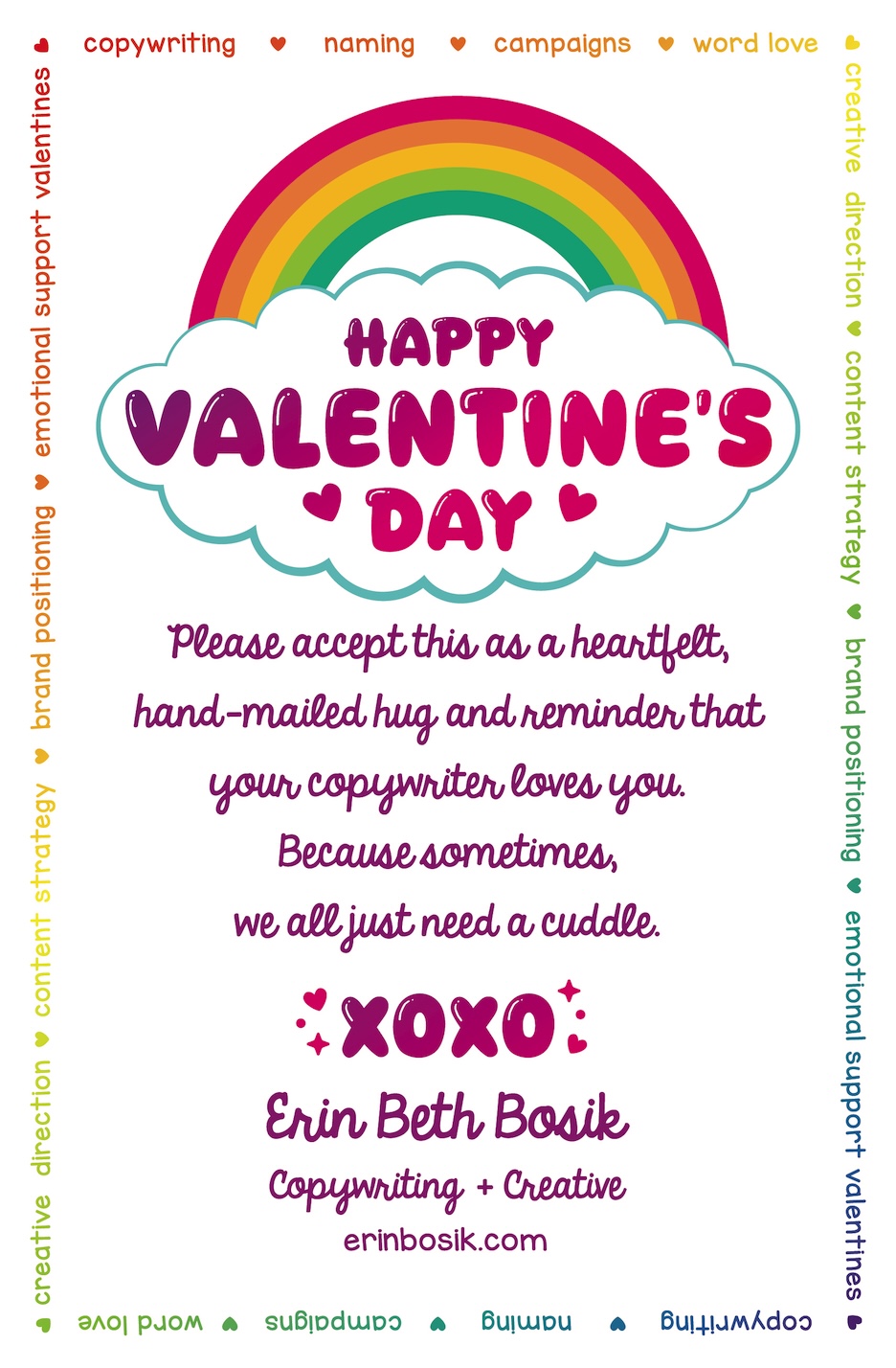 But sending these valentines has become one of my favorite traditions. It’s my small way of saying thank you—for the trust, the referrals, the brainstorms, the deadlines, the collaborations…the the magic. Yes, business can be serious. Deadlines are real. But why bother with any of it if you can’t have a sh*t ton of fun while you’re at it?